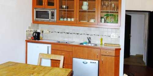 這家公寓配有電視、帶冰箱和洗碗機的設施齊全的小廚房以及帶淋浴設施和吹風機的浴室。