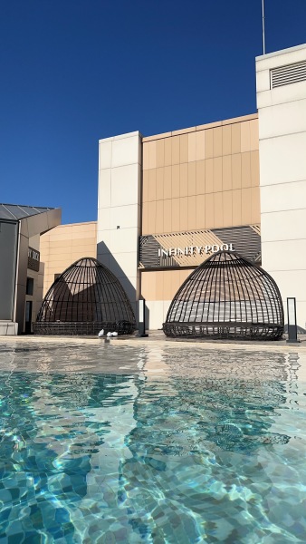 來看這個咖啡廳跟露天泳池