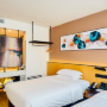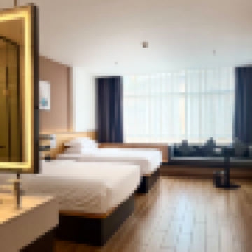 家庭旅遊 LUJIA·商務雙床房·50寸液晶投屏·小冰箱·落地大窗