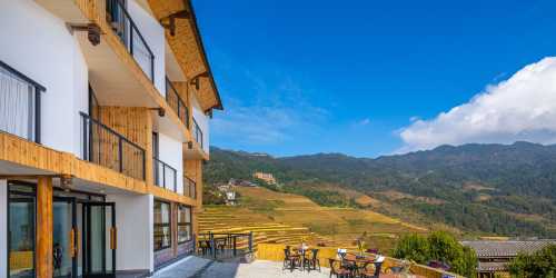 雲雅琴棲坐落在龍脊梯田一號觀景台,既擁有一號梯田的壯觀景色,又有遺世獨立的飄逸, 前觀日出,雲霧,梯田,背依山林。獨特的地理位置讓其成為名副其實的270度觀景度假精品名宿,且每間客房的觀景都能坐擁梯田的天然視線。
