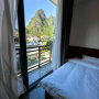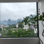 這裏的山景很漂亮,透過落地窗看出去,景色好像一幅畫。陽台可以看到灕江碼頭,看來來往往的竹筏在江上穿梭也很愜意。三樓公共區域喝茶是不錯選擇。我最關注還有衞生,房間衞生乾淨,我還特意查看了床單,是換洗過的[憨笑],來楊堤的話,這家可以推薦。