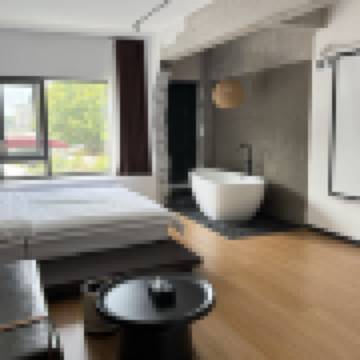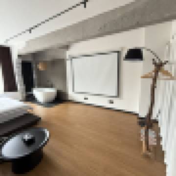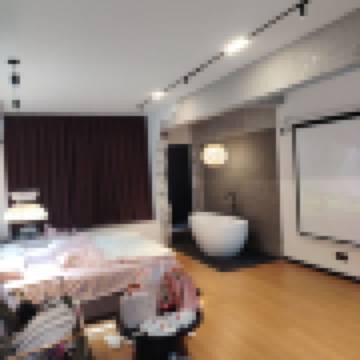 巨幕浴缸侘寂風大床房(120寸巨幕投影+沙發+柔光燈)
