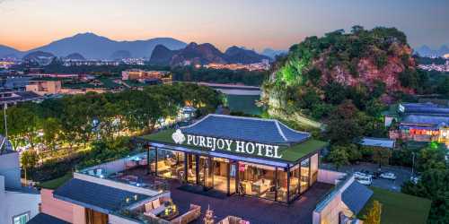 與好友旅遊 璞悅景觀大床房(攬象山公園勝景+超大落地窗賞巨幅山水灕江晚霞+陽光卧室日出東方)