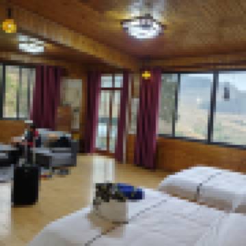 老闆和老闆娘都好能幹,老闆扛着行李上台階健步如飛,老闆娘用揹簍揹着行李下台階也如履平地。老闆大清早準備了早餐給我們,價格很公道。房間特別大,陽台上就能看到龍什麼虎景區。下雨天冷,房間保暖效果還是很不錯的。正好看到寨子裏搞活動,挺有意思的。晚餐時還貼心地給我們準備了火爐烤腳取暖。
