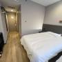 房間屬於一開門就是床的。對一個人來説大小還可以。就是這個房間在樓層中間隔出來的,根本沒有窗戶。有一個假的裝飾窗戶。所以在冬天這種集中供暖的房間,如果樓上樓下有抽煙的,衞生間的換氣扇就會帶着煙味。整個房間是比較乾淨,之前看到評論説房間裏的空氣清新劑是為了遮蓋煙味,那我住之前不知道,住之後是體驗到了。看到酒店標註(部分房間可吸煙)我真的絕絕子,這個通風系統都是一起的,部分房間可吸煙,那真的有什麼意義。前台服務以及地理位置都很好。