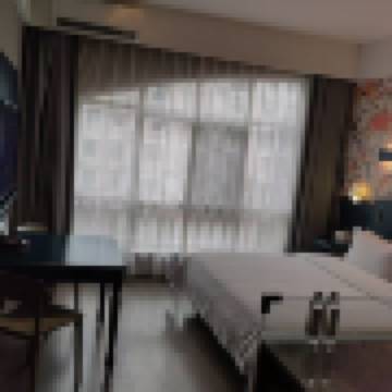 酒店位置優越,房間寬敞,裝飾很特別,是我喜歡的藍色。觀影房能用vip看電影,投影設備清晰,很不錯!要是房間味道能再清新一點就好了。