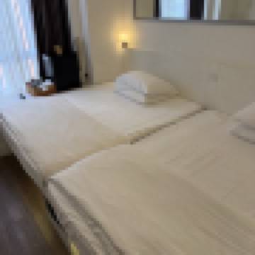 2 個 1 米 5 的大床,這個價格算是比較便宜的了,在尖沙咀。房間不算大,不過衞生搞得還行,缺點是離地鐵站比較遠,走路要差不多半個小時