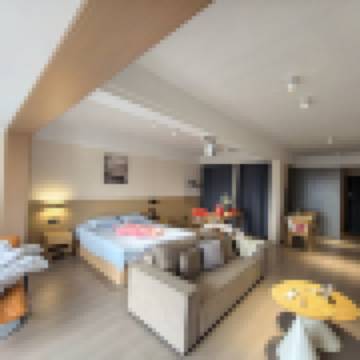 家庭旅遊 一室一廳一衞投影大床房-小冰箱+小米百寸可投屏投影+零重力乳膠床墊+智能馬桶+躺看黃山山景