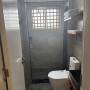 The shower door was sturdy, so the toilet never got wet.