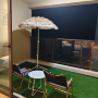 房間衞生整潔~陽台可以看到日出,也可以看到另一邊的晚霞。樓下就是沙灘,離海很近,很方便孩子去玩。今天天氣不錯,不冷不熱,天色還很美,房價很優惠,服務也很好,超讚👍👍👍。