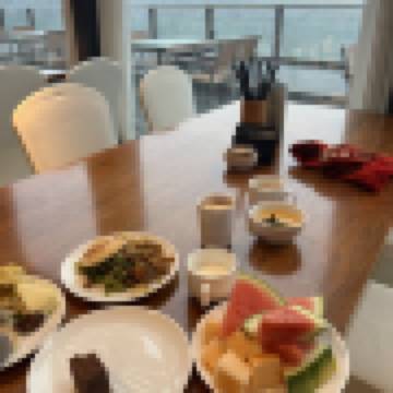 帶着小朋友一起住的酒店,到的當天就有驚喜,接待小姐姐貞貞直接幫我們升級了親子房間。 房間景色非常的好,有山有水,一級棒,還貼心的送了歡迎水果。