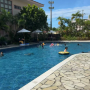 Good location, near to Ishigaki ferry terminal where vendors pick up and drop off participants for water activities, however parking spaces in the main carpark are always full and the second carpark is quite a distance away. The pool and suntanning deck were nice but pool was filled with kids and their parents and you can't do any lap swimming. Pool also opens late from 0930hrs so no early morning swim. Long queue to enter restaurant for buffet breakfast every morning. Love the initiative of getting 1000 yen voucher if you skip housekeeping.