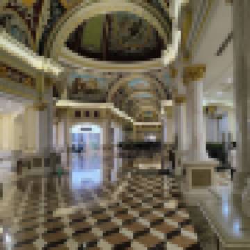 酒店延續了東方人文與歐陸式建築藝術特色,大堂穹頂及百米長廊以梵蒂岡西斯廷大教堂的壁畫為原形,再現歐洲傳統藝術的卓絕。