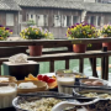隔音就是老房子其他旅客打呼聲甚至聽得到,但我覺得就是體驗不會影響什麼,傍晚還有其他旅客在西柵大街熙熙攘攘時是吵的沒什麼隱私,無法把窗戶打開,但我覺得這也不是大問題,因為等遊客們散去,是寧靜的夜晚,早上也是,房東、服務人員非常熱情貼心,準備紅豆紅棗湯,也貼心提醒各種注意事項,提早把行李拿下來這些的,早餐我們睡過頭沒有準時下去吃,下樓確實熱騰騰上上來,好讚,份量很多,沒吃完有點不好意思😅,怕浪費的人我覺得可以注意一下,備品都超級有特色,愛死!總之大推!也沒有臨水是覺得還好,我們是臨西柵大街,臨水可能更浪漫啦!