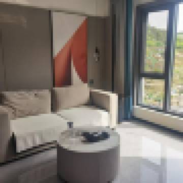 房間佈置問題很大,卧室一個大落地窗,聯通洗漱區域衹有一個小的隔斷,洗澡間和衞生間是全透明的,可以從大落地窗外部看見,心理上接受不了。而且洗漱區域的百葉窗無法遮光,天亮的早,會被光線叫醒。洗澡水忽冷忽燙,體驗很差。其他小的方面,比如洗漱台下面有未連接的電線,雖然是包裹好的,但感覺這個房間衹是裝修的半成品就拿出來運營了;除了馬桶上方洗漱台附近沒有任何掛毛巾的地方;馬桶下方有不明黃色污漬,沙發上有污漬説明清潔不到位;房間有傢俱散發的異味等等。總之就是連夜跑人,不會再住。