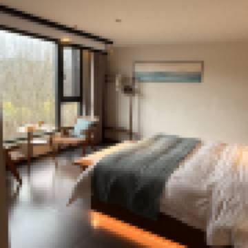 家庭旅遊 落地窗觀山水景大床房戴森吹風機+120寸投影+梳粧鏡+全屋智能+地暖+康乃馨舒適床墊布草+科勒潔具+箭牌坐便器+品牌洗浴用品+智能舒適睡眠水機空調