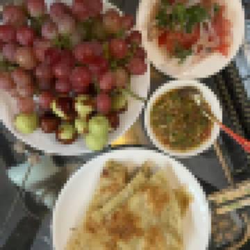 除了前面提到的沙葱炒蛋和胡楊燜餅,您還能在周邊品嚐到驢肉黃面,勁道的麪條搭配鮮香的驢肉,口感超讚;還有泡兒油糕,色澤黃亮,表面蓬鬆如輕紗,味道香甜。