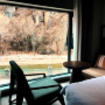 天上月丨湯泉大床房-氤氲湯氣瀰漫坐卧山水景緻