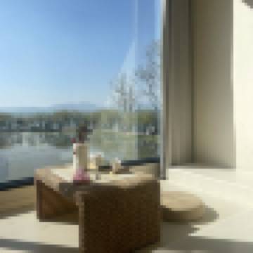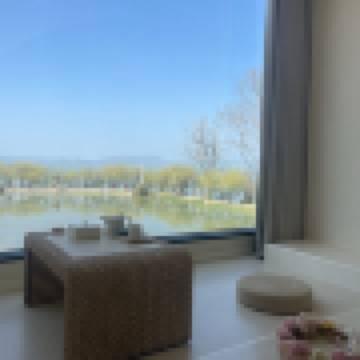 榻榻米茶桌落地窗海景大床房