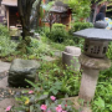 民宿是書院式的文化民宿,仿古的建築只有二層小樓,樓梯寬坦,主人最愛的米芾的《研山帖》和各種假山奇石、蕨草石燈在雕花的窗櫺旁雅緻得令人閒散,懶洋洋的意趣和中式的優雅,讓人貴氣。