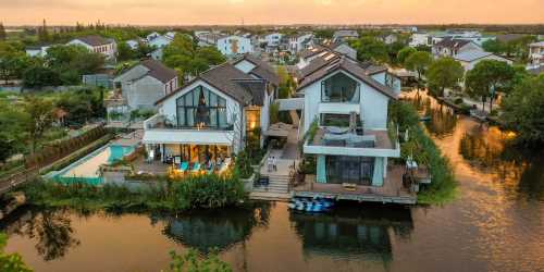 野奢水景兩居合院別墅