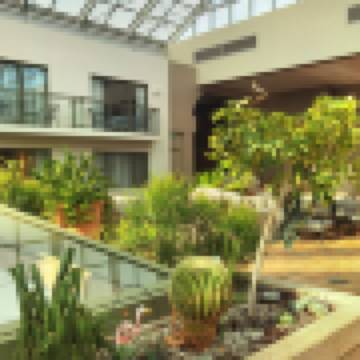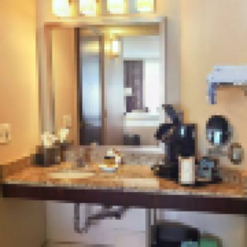 Wish we could have taken advantage of beautiful resort like atrium with pool and hot tub and cream palm trees.