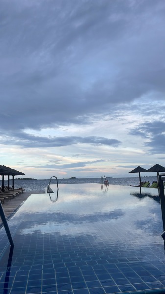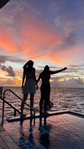 情侶 日落海洋泳池別墅