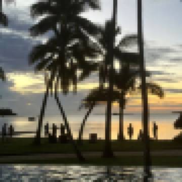 情侶 海濱泳池草屋