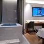 我們是帶温泉池的,最不喜歡温泉池在睡覺區域,衹有半塊窗簾擋住温泉池。淋浴間的門不擋水,水都跑到洗漱區。但280幾帶私家温泉池也算不錯,不帶池的才170幾,而且是在市中心,5分鐘到錢王門,真的很不錯了。