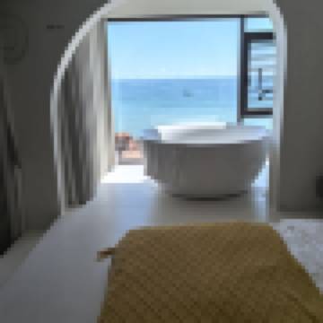 聖託里尼·洞居浴缸陽台日落海景大圓床房(空氣凈化器)