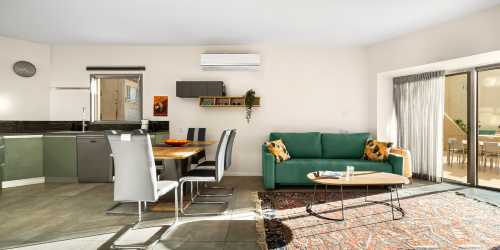 在這間享有迷人海景的海濱公寓中,伴着舒緩的海浪聲醒來。公寓設計精巧,舒適宜人,設有三間卧室(兩間配有大床,一間配有雙層床),以及一個配備雙人沙發床的寬敞起居區,非常適合家庭或小型團體入住。開放式起居和用餐區明亮宜人,大窗戶引入自然光線,將海岸風光盡收眼底。現代化廚房設施齊全,配備洗碗機、烤箱、微波爐、Nespresso咖啡機以及烹製家常菜所需的所有必需品。洗衣機、烘乾機和熨燙設施為長期入住增添便利。步入私人陽台,即可在戶外用餐,欣賞壯麗的海景。客人還可以使用共用泳池、燒烤區和海濱座椅,盡情放鬆身心。遮光窗簾確保您安睡一夜,公寓還配備了煙霧報警器和滅火器,確保安全。這間公寓位於海灘黃金地段,設有私人免費停車位,完美融合了舒適與海濱魅力。