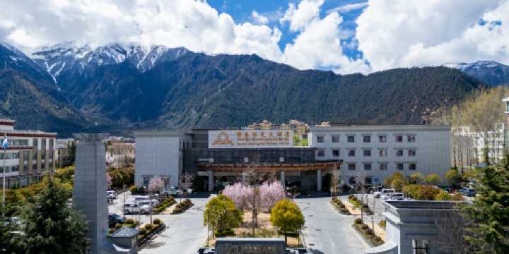 酒店坐落於林芝市中心地段,佔地面積約34畝,距林芝市人民政府咫尺之遙,距林芝火車站僅需20分鐘車程。酒店面對市區臨近的風景名勝——比日神山,酒店由清新葱綠的綠化園景、寧靜淡泊的水景圍繞,酒店建築物體由完美融合了藏文化元素和現代裝飾藝術的思金拉措樓和尼洋樓組成,有“花園酒店”之美稱。酒店有按照星級標準打造的豪華園景、山景客房、各類套房多間/套,裝飾裝修風格獨特,各種功能配套齊全,各種設施設備配置完整,安全保障管理體系完善,中餐、西餐、藏餐廳可同時容納800人就餐,配置有6個各種功能類型的會議廳/室,會議廳/室配備有高檔多媒體專業設備,配備有專職嫻熟的會務服務人員,讓五湖四海來林芝旅遊觀光、公務會議、商務活動的賓客感受到“不是行走在旅途,只是生活在別處”的寧靜舒適與愉悅愜意。