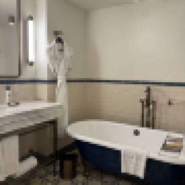 高級房,1張特大床,廣場庭院景觀,有朱麗葉陽台和法式門(35平方米/377平方英尺)