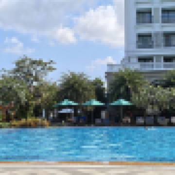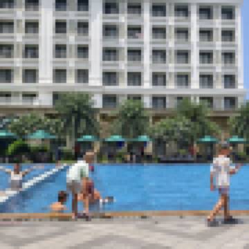 與好友旅遊 游泳池景標準特大床間