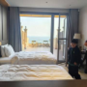 家庭旅遊 巨幕海景雙床房(配備兩個雙人床+擁被枕濤觀海上日出)