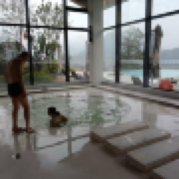 前台服務態度很好,設施很新,但房間地毯有點臟。室外温泉池風景很好,但沒有全部開放,據説和最近雨水少、温泉水量少有關。順帶誇一下酒店對面的瑤家農莊,出品很不錯,老闆人也很實在,雞現點現殺,個頭小的雞還能算便宜一點。