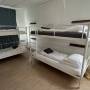 8人女性宿舍房的雙層床,共用浴室