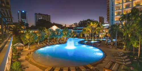 商務旅客 大床間帶兩張大床並享有泳池景