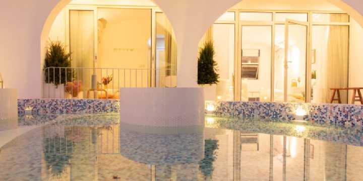 泳池景觀圓床房-巨幕投影-庭院-泳池景觀