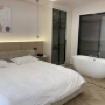 奶油風浴缸大床房(地暖+冰箱+洗衣機)