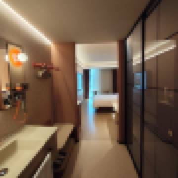 商務大床房-180°落地窗-手機投屏-舒適床品-MINI冰箱