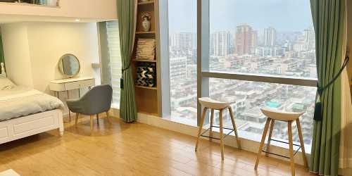 海夢藍庭L o ft三床房丨冰箱+超大觀景落地窗+洗衣機