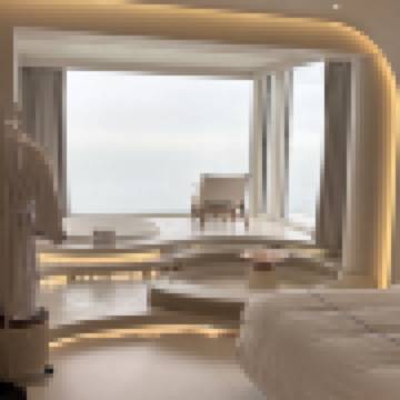 房間很大 很漂亮 整個都是海景 以及燈也很好看 水池好大 床很大 非常舒服 柔軟 冷氣通風也做得不錯 毛巾是一次性的 廁所自動的 水温有顯示器寫幾度 位置很近後宅鎮 叫外賣或者去餐廳吃也很方便 選擇很多 樓下有公交車站 工作人員很友善 熱情 會提供很多遊玩資訊 連住的話 還有清潔阿姨 幫忙打掃 推薦推薦