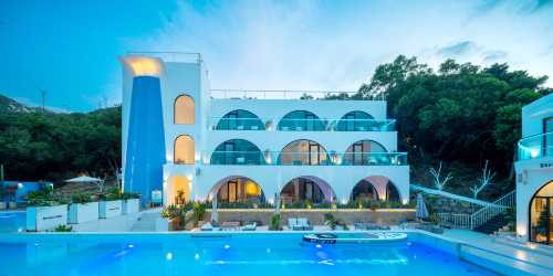 民宿外牆很漂亮,有地中海風格。 房間裏很乾凈,香香的。 位置在島上的東邊,周邊很安靜(不是熱鬧區域)帶娃度假非常適合 民宿離周邊的自然之門,北緯32度網紅打卡點非常近(騎小電驢10分鐘距離) 民宿門口就有租借電驢,非常方便 夏季來應該更熱鬧,因為酒店自帶泳池 早餐的套餐很充實