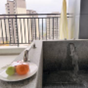 房間大,床也大,陽台更大,還有水果送,住的舒服,樓下的小童設備沒開,挺可惜的,附近好多爛尾工程,地方挺偏的,還好酒店早餐有驚喜,竟然有地道擂茶。黃小桃售後還貼心回訪。
