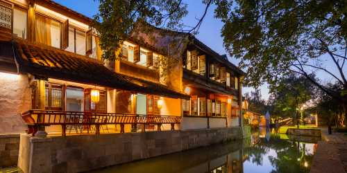 家庭旅遊 永遇樂·古鎮臨河大床房【陽台+智能馬桶】