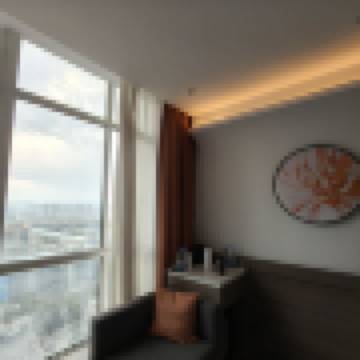 獨自旅遊 奢享大床房-暖陽落地窗+摩登都市景緻+小冰箱+轉角沙發