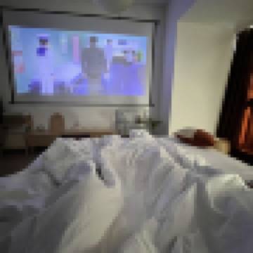 與好友旅遊 日系奶油風大床房(全景落地窗|極米投影|騰訊SVIP會員|支持投屏|零壓床墊|私家廚房)