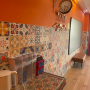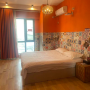 獨自旅遊 千鳥格愛馬仕橙巨幕投影大床房