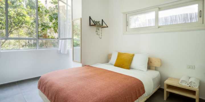 歡迎來到我們温馨宜人的兩居室花園公寓,位於特拉維夫充滿活力的老北區中心地帶,舒適便捷,盡享便捷。這間迷人的休憩之所氛圍宜人,可欣賞庭院和花園美景,為您的入住營造寧靜祥和的氛圍。公寓內設有安全避難所,確保您的安全與安心。步入精心設計的起居空間,配備55英寸智能電視,供您娛樂。設備齊全的廚房配備洗碗機、意式濃縮咖啡機、烤箱、冰箱、爐灶和烤麪包機等現代化設施,讓您輕鬆準備餐點。您可以在戶外用餐區呼吸新鮮空氣,享用您的烹飪佳餚,或在私人後院放鬆身心。精心布置的卧室讓您安心入睡,整晚安睡。公寓還提供洗衣機和烘乾機等便利設施,確保您擁有舒適住宿的一切所需。無論您是商務出差還是休閒度假,我們的公寓都地理位置優越,方便前往當地景點和便利設施。